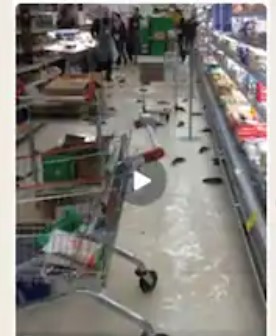 കനത്ത മഴയില്‍ പുഴയായി സൂപ്പര്‍മാര്‍ക്കറ്റ്; തറയില്‍ മീനുകളുടെ നീരാട്ട്-