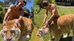 അതുപോലെ ഒരു വീഡിയോയാണ് സോഷ്യൽ മീഡിയയിൽ വൈറലായ ഈ വീഡിയോയും. ഒരു യുവാവ് കടുവയെ ലാളിക്കുന്നതാണ് വീഡിയോയിൽ കാണാൻ സാധിക്കുന്നത്. യുണൈറ്റഡ് സ്റ്റേറ്റ്സിലെ മർട്ടിൽ ബീച്ച് സഫാരിയിൽ നിന്നുമാണ് വീഡിയോ പകർത്തിയിരിക്കുന്നത്. ഇവിടെയുള്ള പരിചയസമ്പന്നനായ ഒരു ആനിമൽ കെയററാണ് കോഡി ആന്റിൽ. കോഡി കടുവയെ ഒരു കുളത്തിലേക്ക് കൊണ്ടുപോകുന്നതാണ് വീഡിയോ തുടങ്ങുമ്പോൾ കാണാൻ സാധിക്കുന്നത്. പിന്നീട് കോഡി കടുവയുടെ ചെവിക്കിരുവശവും തലോടിക്കൊടുക്കുന്നതാണ് കാണുന്നത്. ആ സമയം കടുവയുടെ കണ്ണിൽ സന്തോഷം നിറയുന്നതും വീഡിയോയിൽ കാണാം. തനിക്ക് തലോടുന്നത് ഇഷ്ടപ്പെട്ടുവെന്ന് പ്രകടിപ്പിക്കുന്നതാണ് തുടർന്നുള്ള കടുവയുടെ പെരുമാറ്റം.